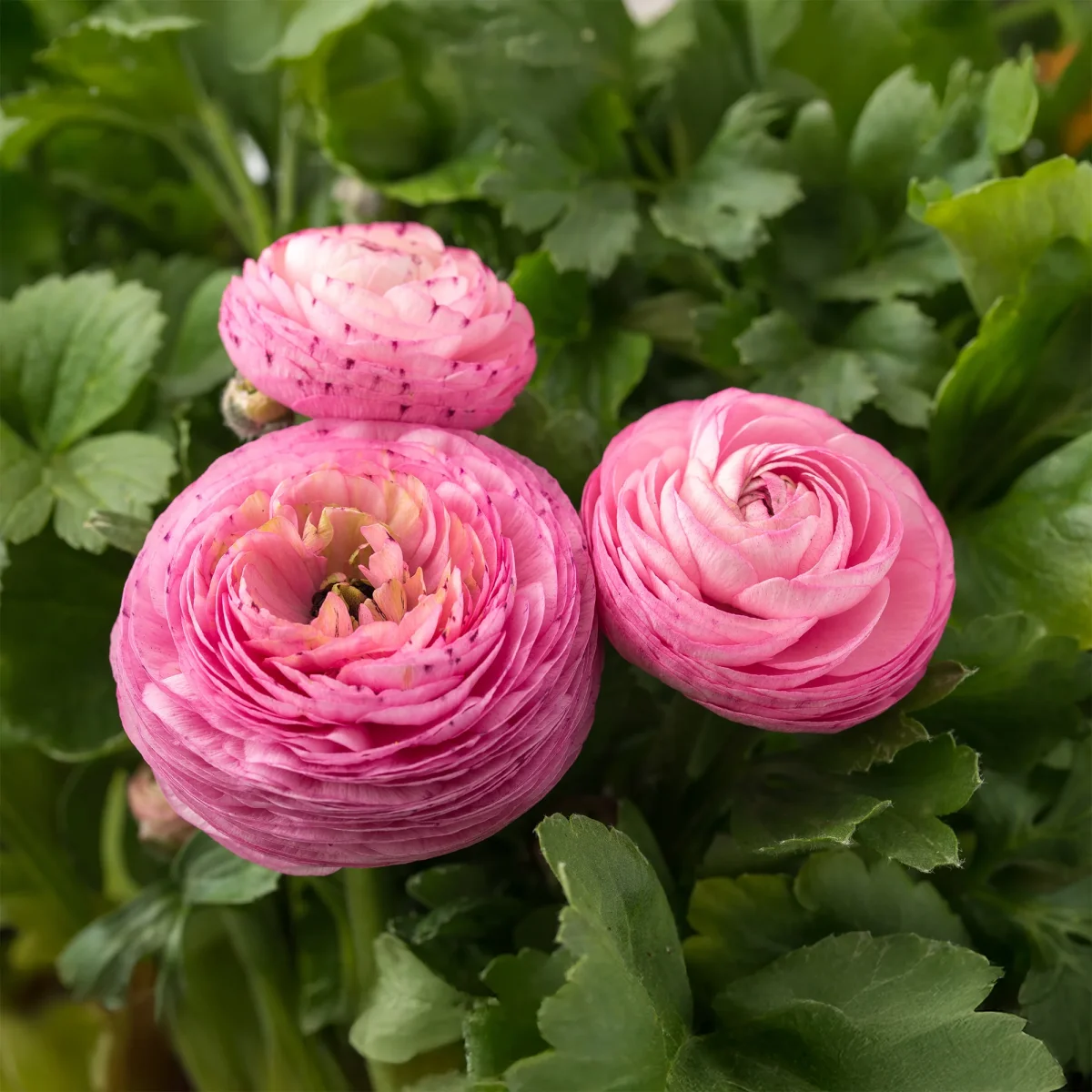 Les Renoncules asiatiques roses se démarquent par leurs pétales nombreux et bien serrés. Ces fleurs pleines portent une large palette de nuances allant du rose tendre au rose soutenu. Leur apparence opulente est comparée à celle des roses anciennes, offrant une alternative poétique et exubérante. Le feuillage est d’un vert profond, donnant à ces Renoncules un charme rustique et un contraste élégant avec les délicats pétales colorés. La floraison de ces renoncules est l’un des moments attendus du printemps, apportant vie et couleur au jardin.