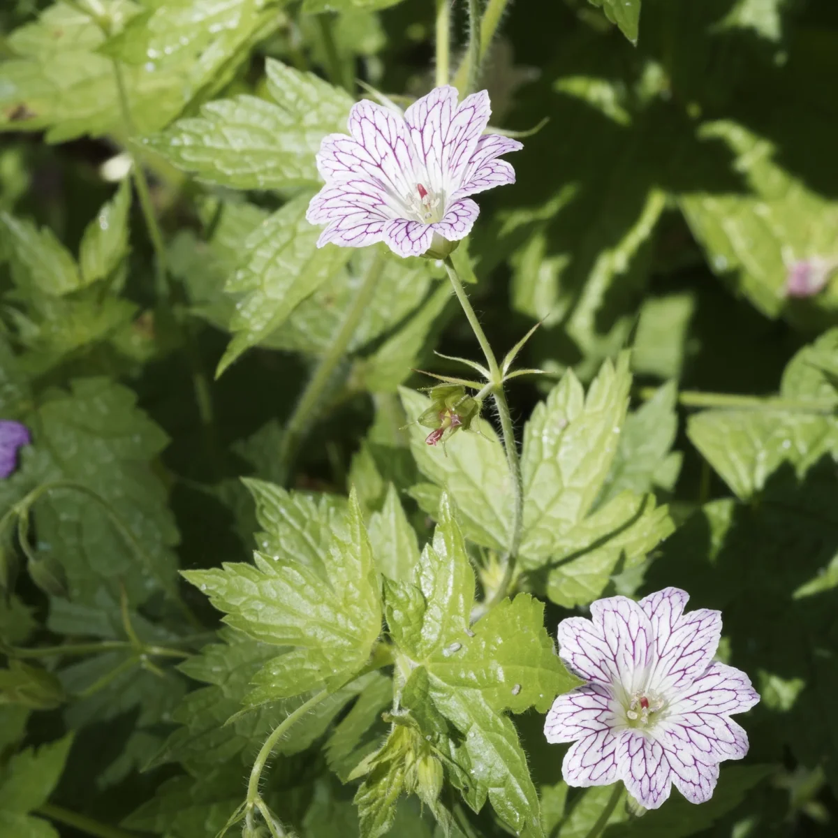 Ces variétés striées de géraniums vivaces, appelées Geranium Oxoniamum en botanique, sont dotées d’un joli feuillage découpé et de fleurs finement rainurées. Ces dernières sont composées de cinq pétales bien séparés. Elles existent en rouge, en rose, en lilas, en blanc, en bleu, en mauve, en violet, et même en noir ! Elles peuvent également être tachetées de pourpre et de blanc. Dans tous les cas, les nombreuses couleurs des géraniums vivaces ne manqueront pas d’égayer vos espaces extérieurs.
