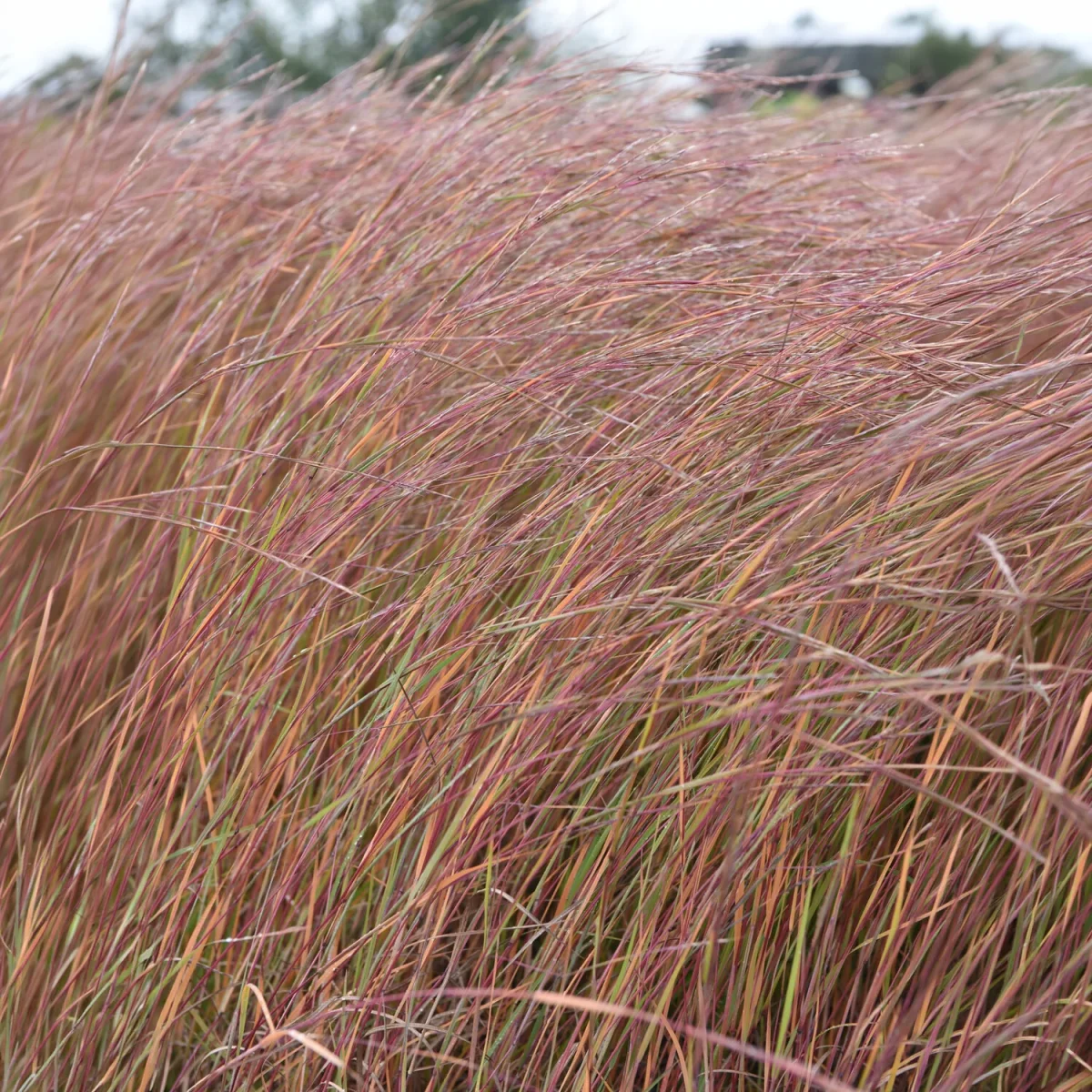 En massif : installez-la par groupes de 3 ou 5 pour un effet plus naturel. Elle met en valeur les vivaces à floraison estivale ou automnale, en leur offrant un arrière-plan structurant. Elle est intéressante en lisière de massif, pour donner une impression de mouvement lorsque le vent agit sur les épis.