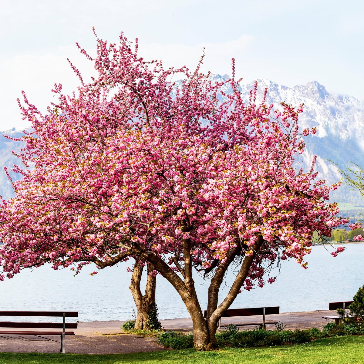 Le cerisier à fleurs Kanzan est un arbre d’ornement bien connu au Japon. Il attire l’attention avec sa généreuse floraison de couleur rose tendre, sa forme en Y et sa grande taille. Sa hauteur peut atteindre jusqu’à 12 m et sa largeur jusqu’à 8 m.