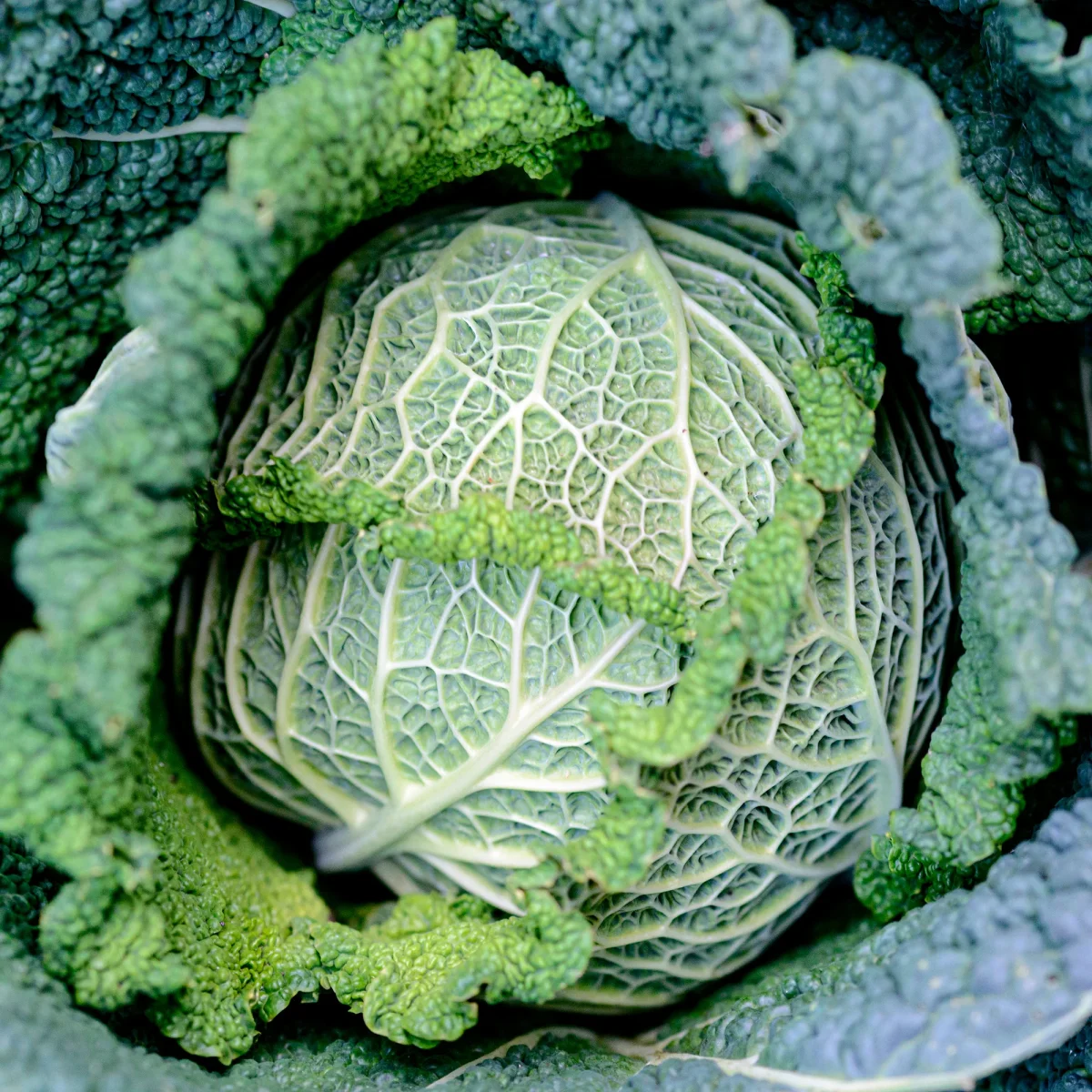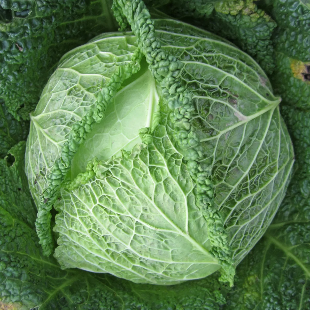 - Port et silhouette : plante à rosette, dressée, formant une pomme centrale compacte, entourée de feuilles étalées et cloquées. Aspect typique des choux de Milan, avec une structure solide mais sensible au vent si mal tuteurée sur sol très meuble.