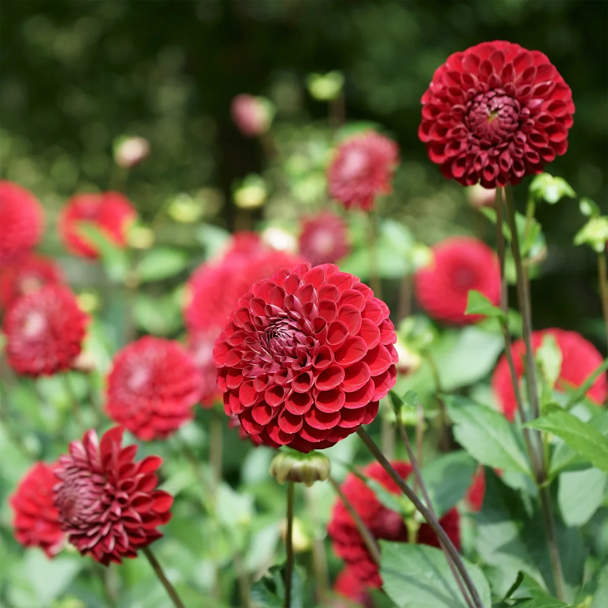 Le Dahlia pompon Cornel se distingue par ses petites fleurs rondes d’environ 7 cm de diamètre qui, malgré leur taille, compensent par un impact visuel saisissant. Elles se présentent dans des nuances de rouge profond, ajoutant ainsi une note chaleureuse et opulente à votre jardin. De stature imposante, cette plante atteint des hauteurs comprises entre 90 et 120 cm, formant ainsi une toile de fond idéale derrière des vivaces plus petites. Son feuillage vert sombre offre une toile parfaite qui accentue la couleur éclatante de ses fleurs. Sa robustesse et sa capacité d’adaptation à différents types de sols, pourvu qu’ils soient bien drainés, en font une espèce particulièrement recommandée pour les jardiniers amateurs comme avertis cherchant à enrichir leur espace.