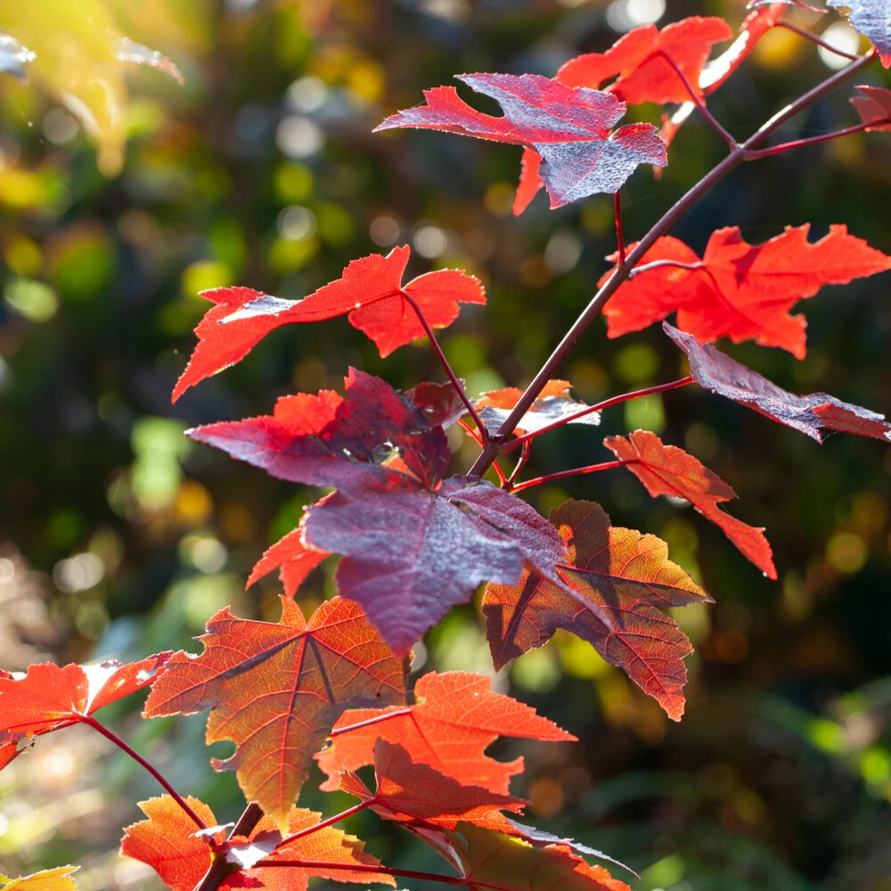 Cet érable a des feuilles qui changent de couleurs en automne. La teinte passe du vert au rouge vibrant. Cette belle couleur rouge est due à la présence de pigments appelés anthocyanes dans le plant. Ces éléments se développent dans les feuilles lorsque les températures commencent à diminuer et que la lumière du soleil diminue. Le coloris rouge de l’érable varie en intensité. Il dépend de la quantité de lumière et de température reçue pendant la saison de croissance. Les arbres situés en plein soleil produisent des feuilles plus rouges que ceux situés à l’ombre. Certaines variétés d’érable rouge ont un feuillage plus rouge que d’autres.