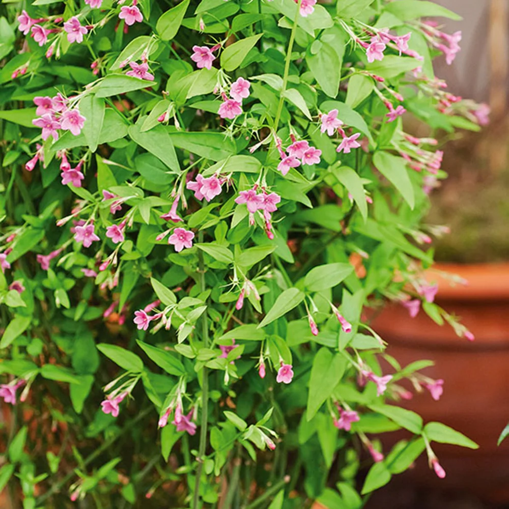 Le jasmin nid d’abeilles est muni de fleurs parfumées en forme d’étoiles, qui sauront ajouter du charme à la plante. Il offre une belle résistance au gel. À maturité, le jasmin rose peut atteindre 6 m de hauteur sur 3 m d’envergure.