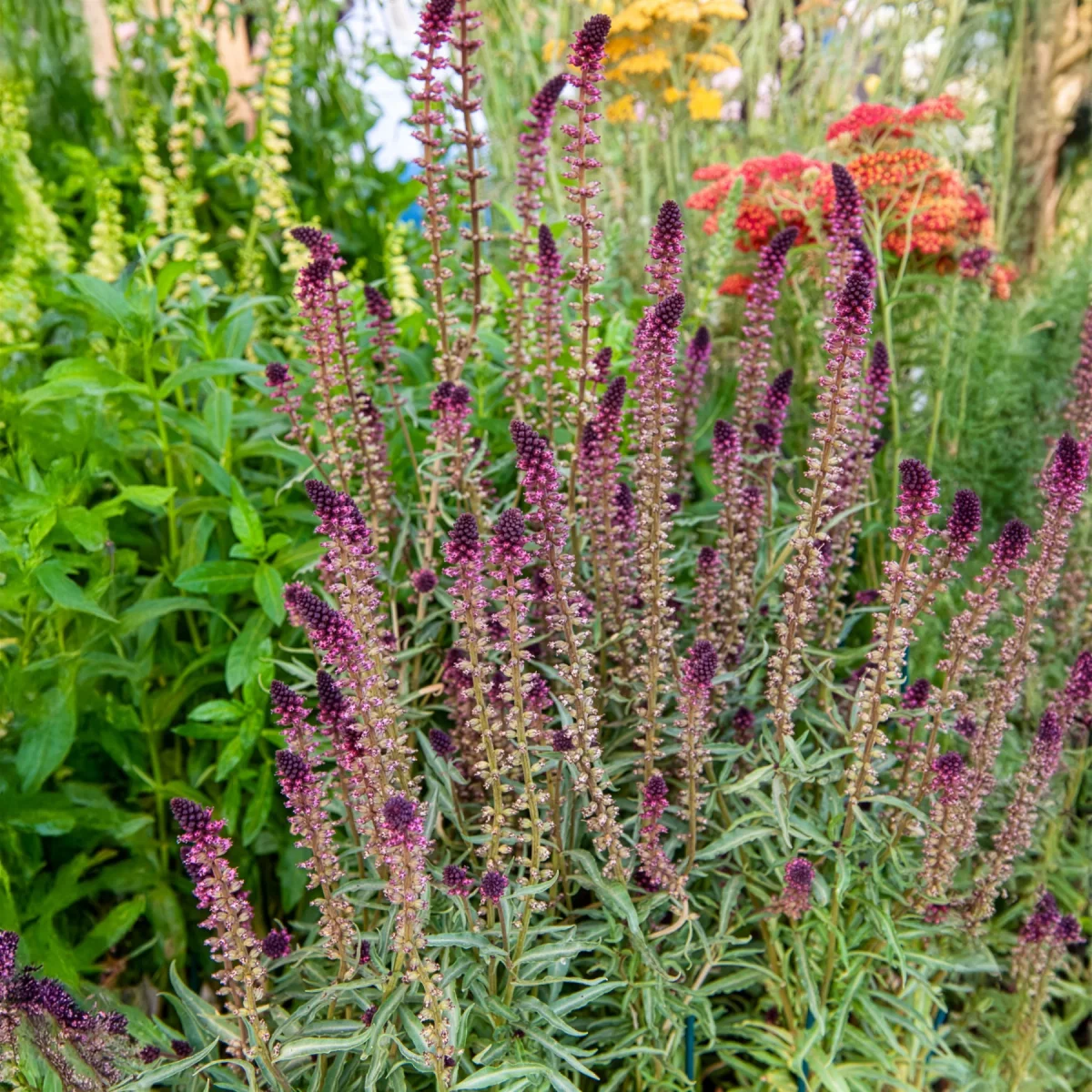 - Avec des feuillages clairs ou argentés, comme certaines sauges ornementales ou armoises, pour créer un contraste de ton.