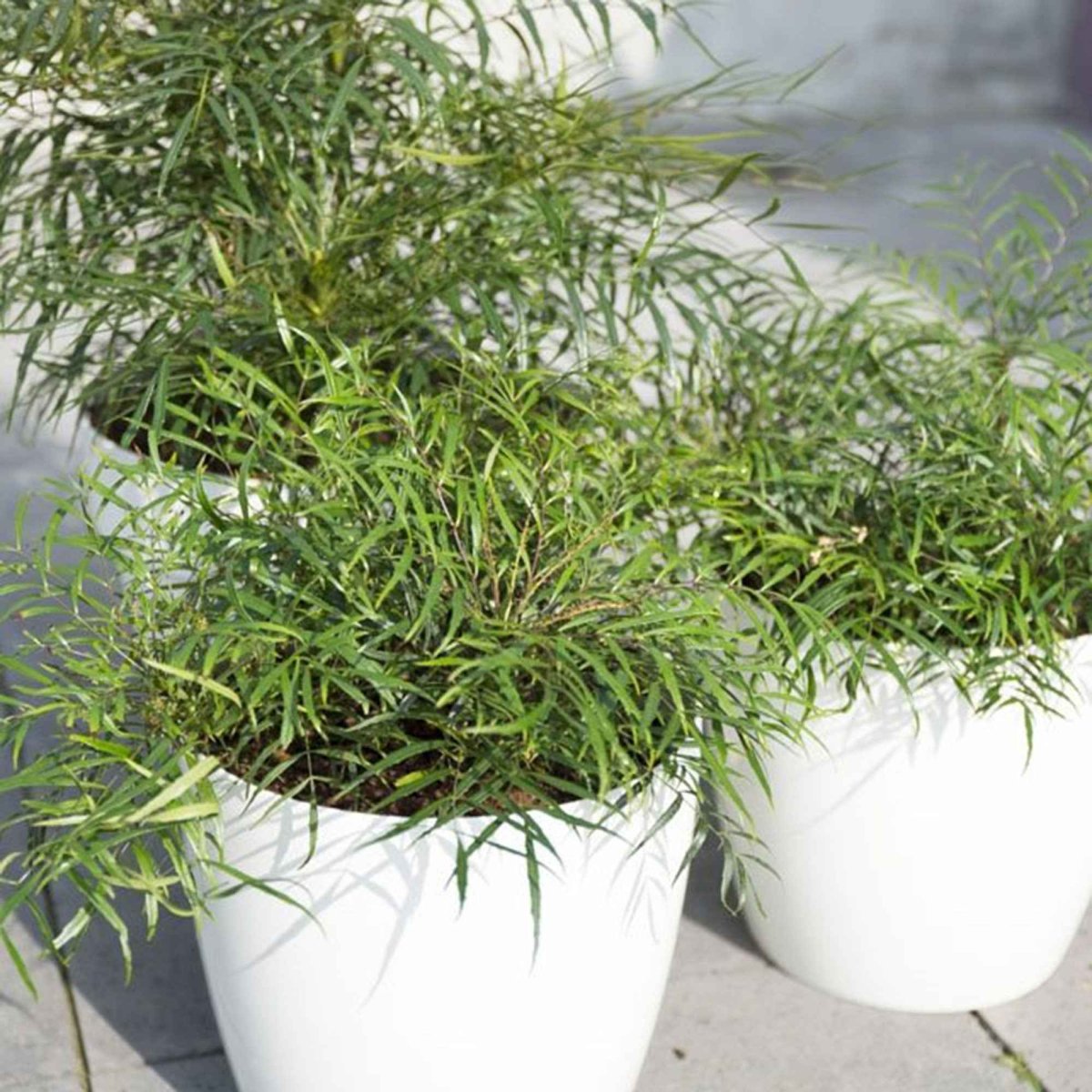 Le Mahonia ‘Soft Caress’ se distingue particulièrement par son feuillage fin, doux, persistant et découpé, mais dénué des épines comme ces autres prédécesseurs. Ses feuilles presque filiformes apportent une touche de finesse inattendue dans le jardin. Durant la saison printanière, la plante arbore une fluorescence jaune doré éclatant. Ces fleurs contrastent merveilleusement avec son feuillage vert foncé, offrant un spectacle visuel constamment attrayant. Durant l’automne et pendant l’hiver, des baies d’une couleur noire alternent ces fleurs. Celles-ci sont une source de nourriture appréciée par les oiseaux, transformant votre jardin en un refuge pour la biodiversité.