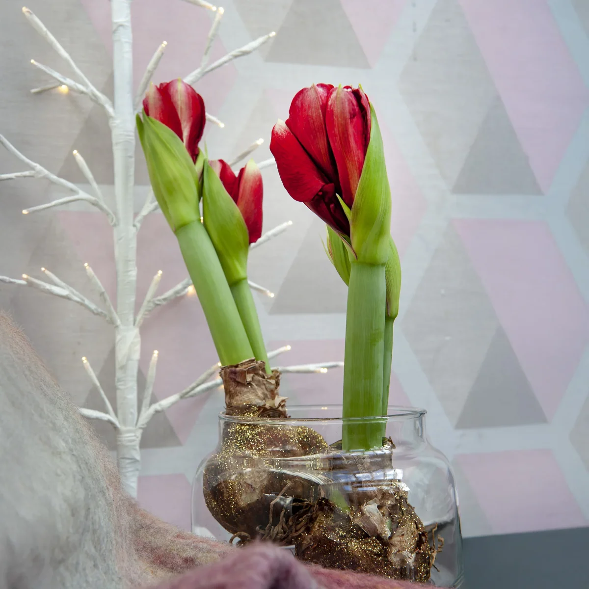 Le Wax Amaryllis Magic Rosé Gold est une pièce maîtresse magnifique qui se suffit à elle-même, mais elle peut également être associée à d’autres plantes d’intérieur pour créer un arrangement floral captivant. Associez-le à des feuillages verts luxuriants pour un contraste saisissant, ou combinez-le avec d’autres fleurs de saison pour une composition harmonieuse. En période de fêtes, il peut être intégré à votre décoration de table pour un effet spectaculaire. Son aspect élégant et ses couleurs sophistiquées en font également un excellent choix pour des événements spéciaux tels que les mariages ou les dîners formels.